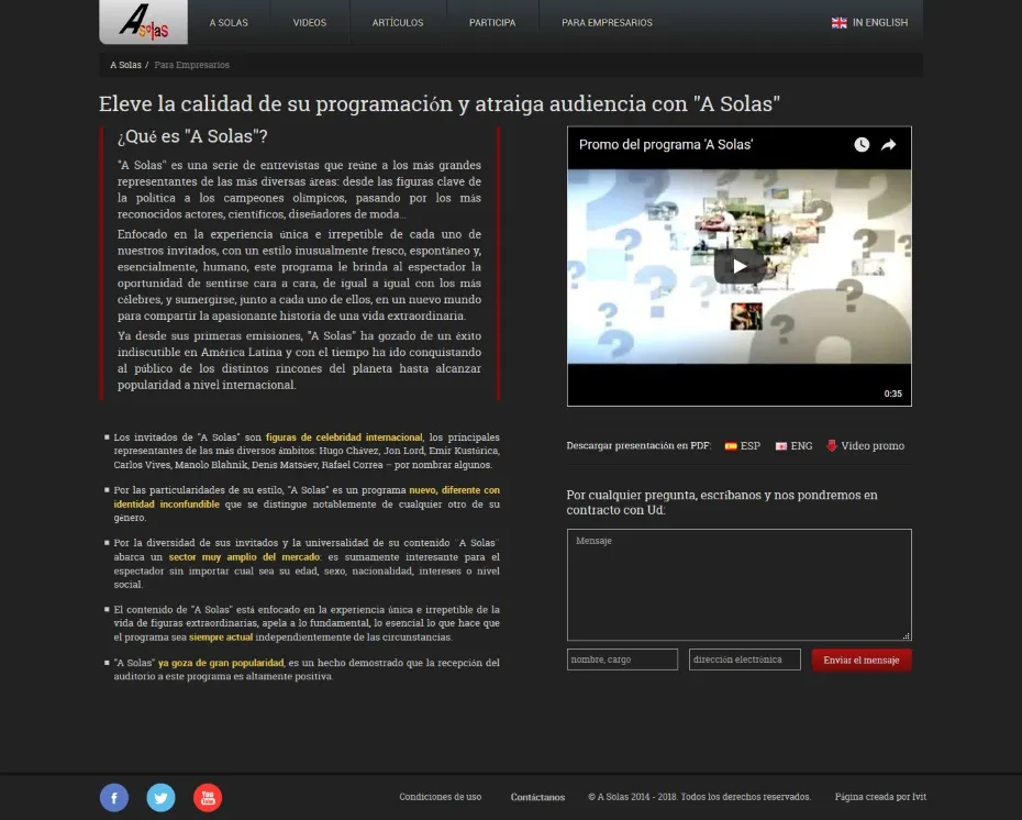 — Телепрограмма интервьювирования с выдающимися личностями «A Solas»