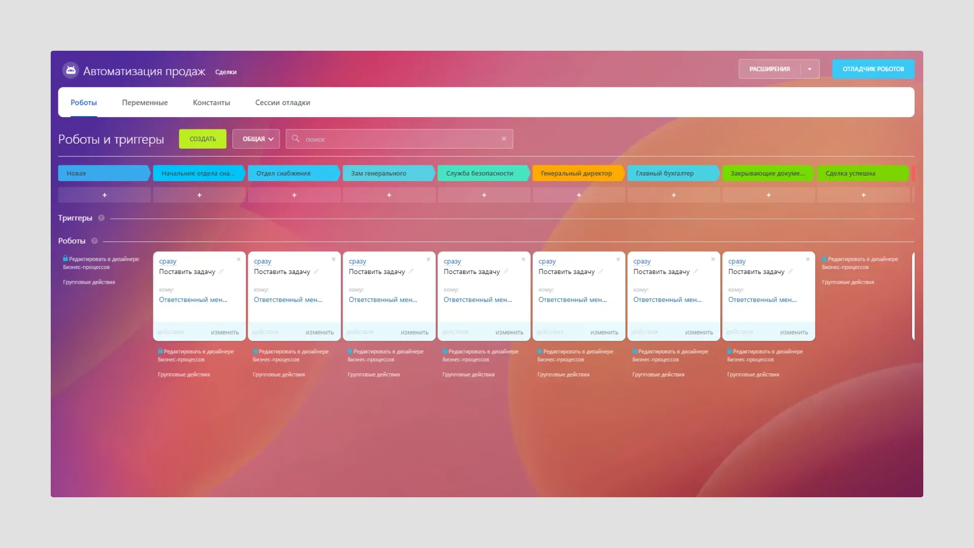 Скриншот: Реализация процесса на базе воронки продаж
