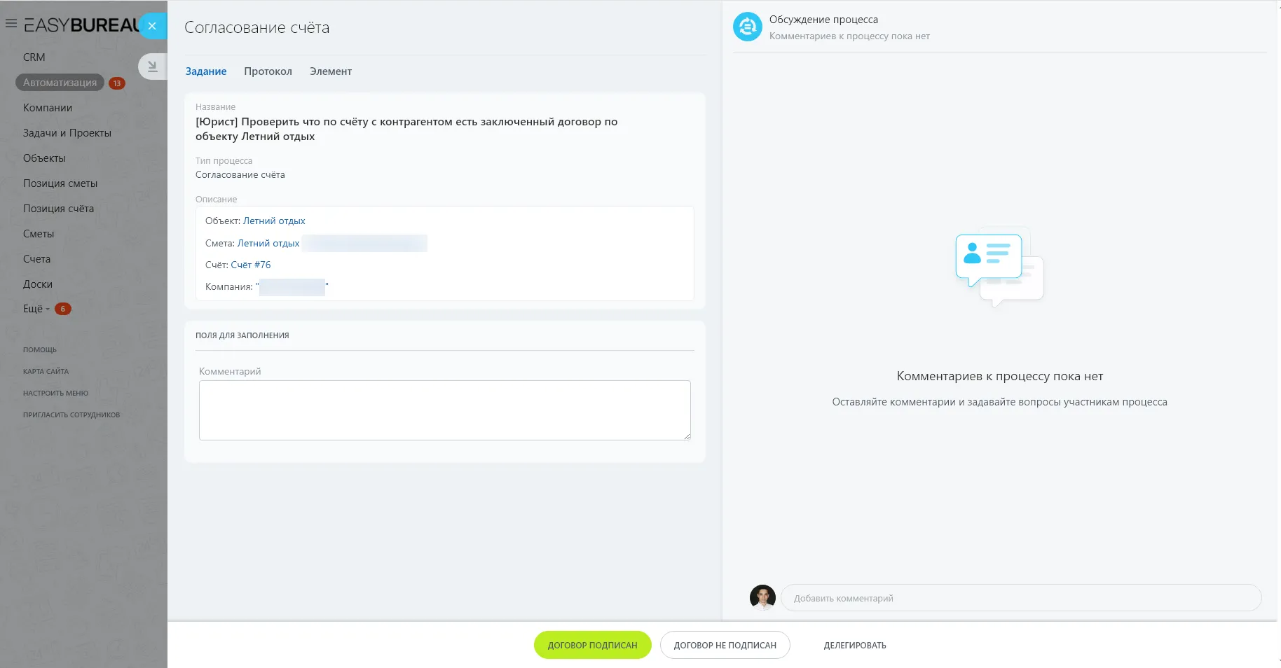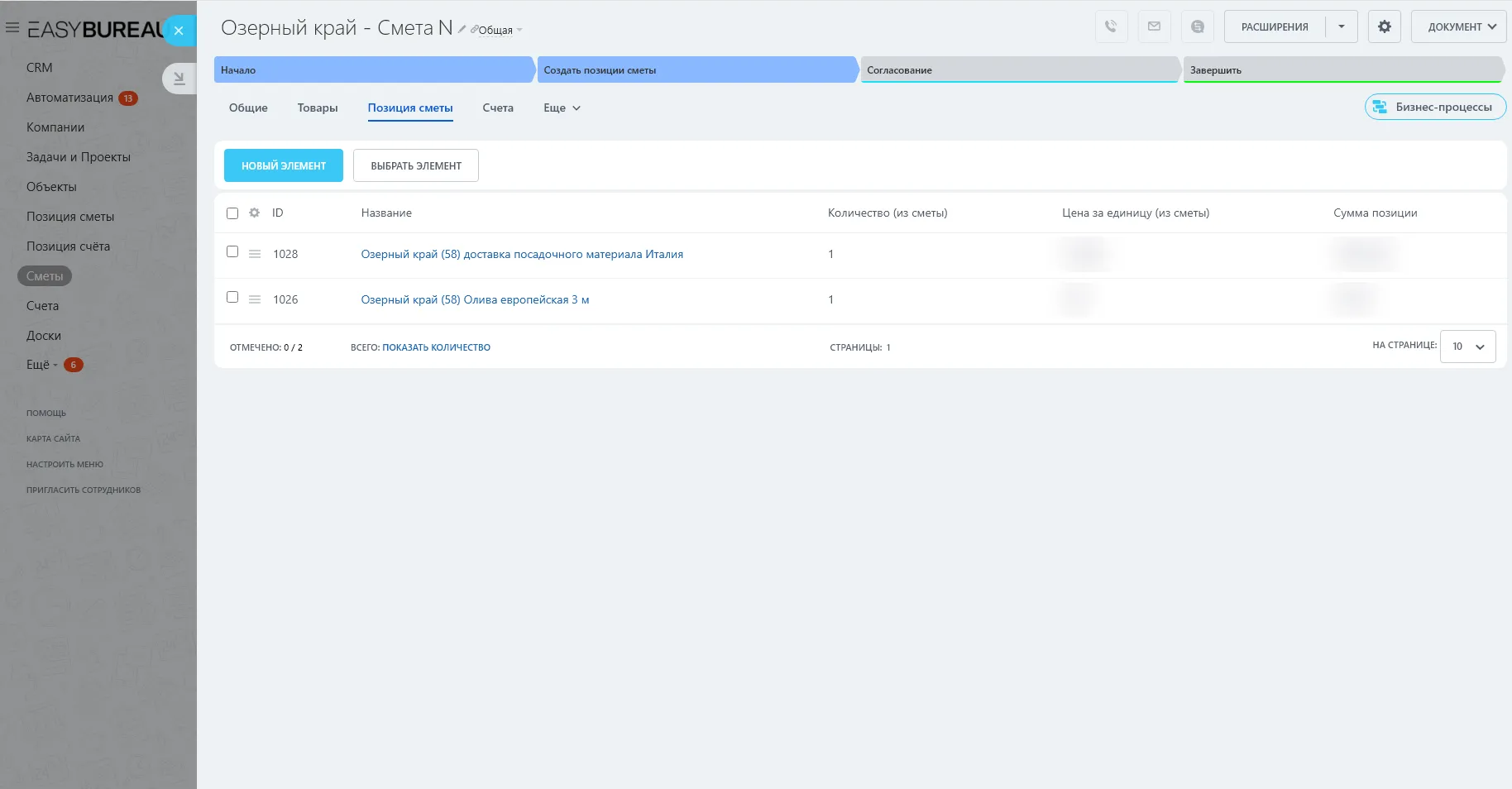 Теперь менеджер может использовать информацию из сметы для согласования счета — без дублирования или ручного переноса данных.