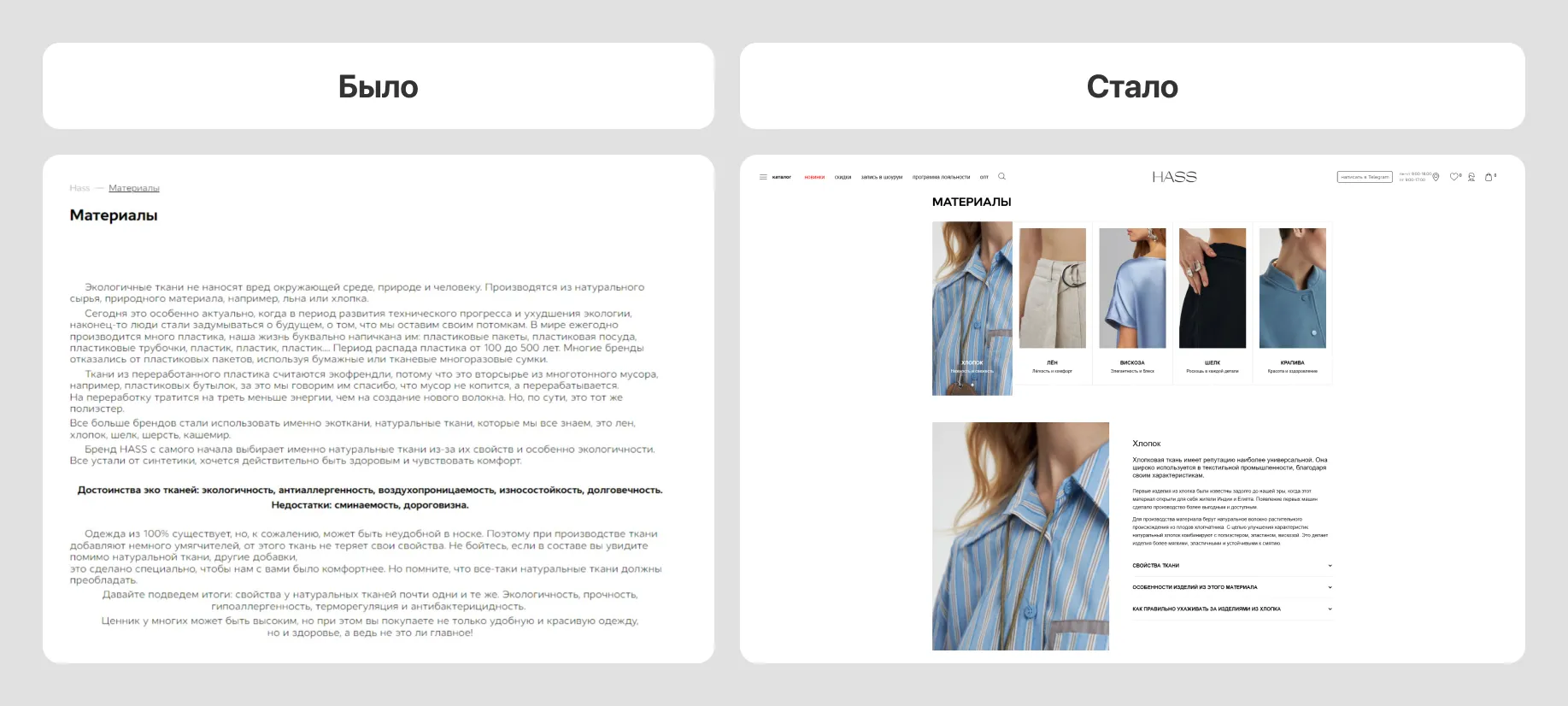 HASS — российский бренд женской одежды мидл-сегмента. Он делает ставку на использование натуральных тканей, экологичность и дизайнерские решения.