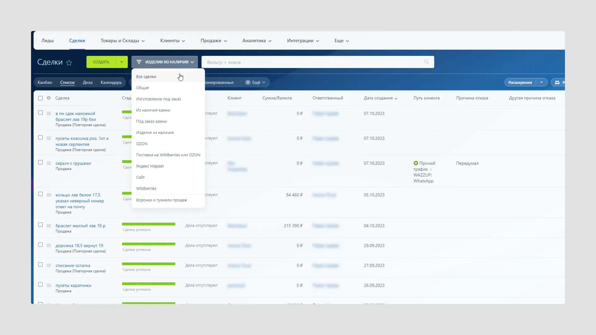 На момент обращения CRM-система в компании не использовалась. Основные отделы компании: маркетинг и реклама, отдел продаж, производство, бухгалтерия. Клиенты велись в разных местах: таблицы в Excel, блокноты, социальные сети, мессенджеры. Складской учет велся также с помощью Excel. У заказчика много обращений из социальных сетей и мессенджеров, в частности Instagram* и WhatsApp.