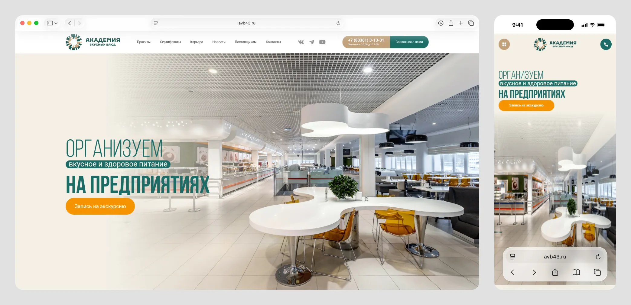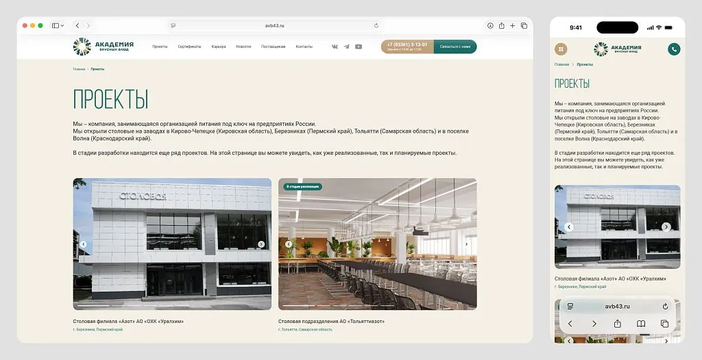 Клиент — «Академия вкусных блюд» — организует корпоративное питание «под ключ». Компания обратилась к нам с запросом на разработку сайта: ресурс на WordPress морально устарел и не соответствовал актуальному позиционированию бренда.