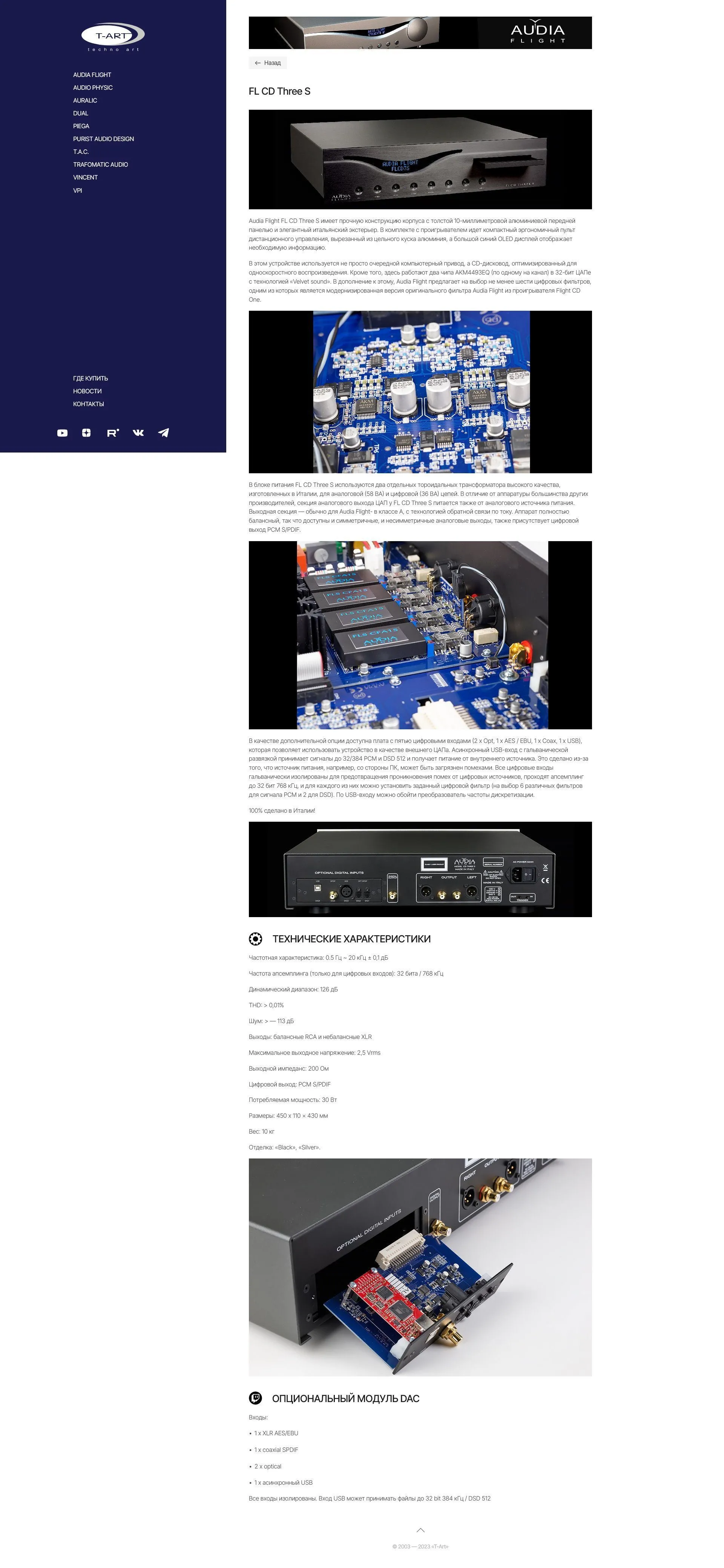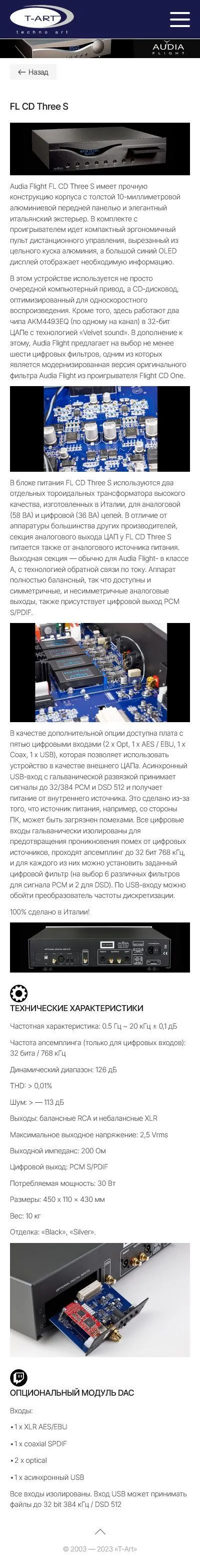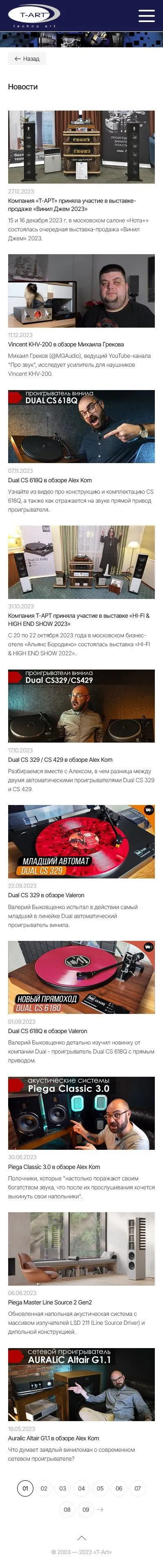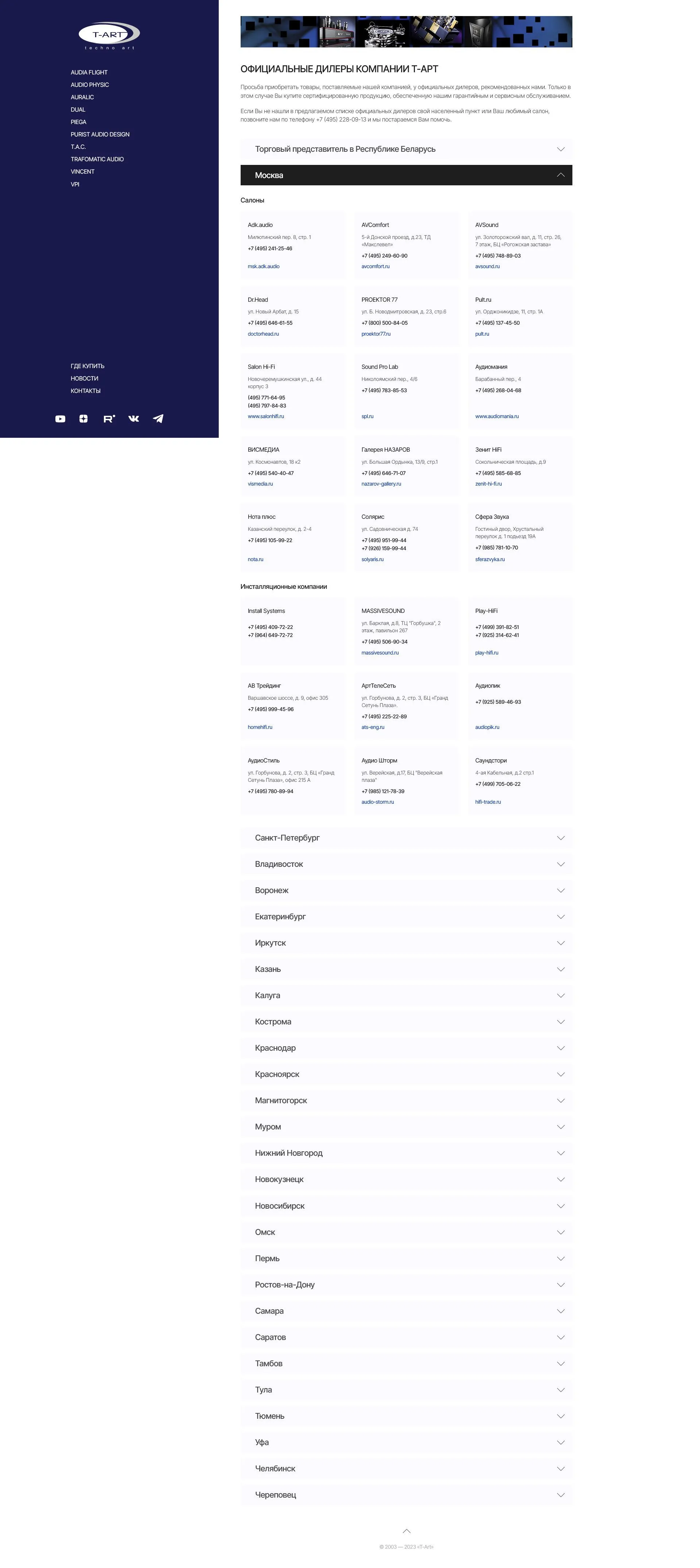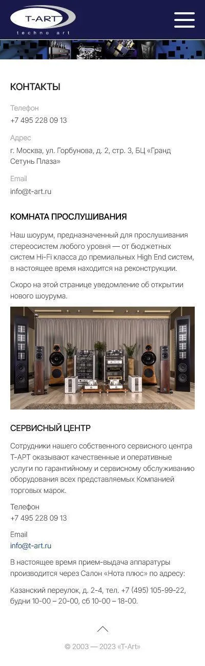 T-art.ru — компания Hi-Fi/High End оборудования для стереосистем и систем домашних кинотеатров от именитых европейских и американских производителей, постоянный участник крупнейшей в России выставки аудио- и видеоаппаратуры высокого класса «HI-FI & HIGH END SHOW».