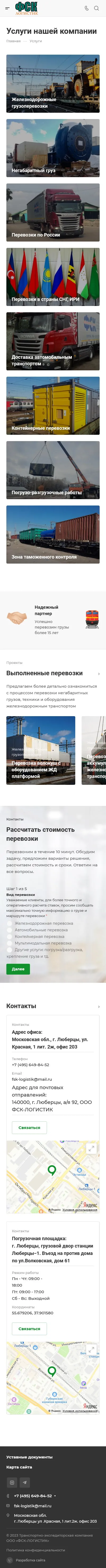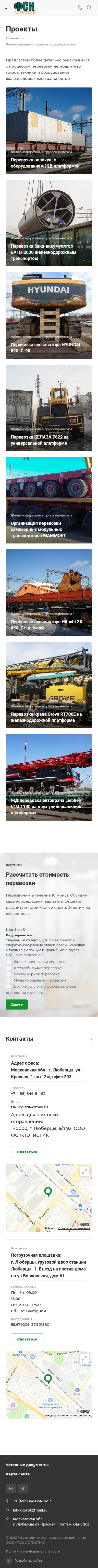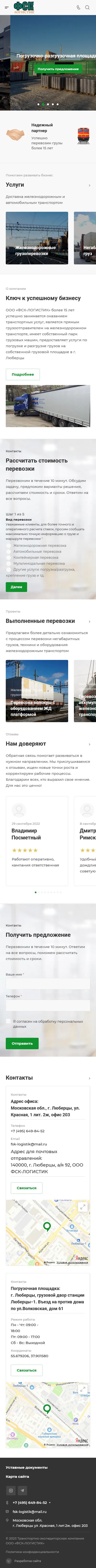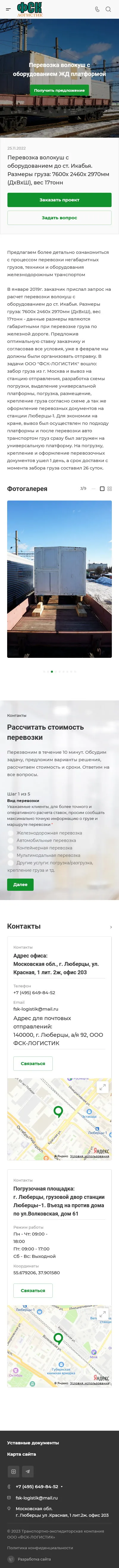 Fsk-logistik.ru — «Fsk-logistik.ru» специализируется на перевозках крупногабаритных, тяжелых и комплектных грузов по России и Ближнему зарубежью. Компания, организованная в 2005 году в г. Люберцы, за годы существования зарекомендовала себя надежным перевозчиком, это доказывает рейтинг сайта ati.su. Многие строительные организации и промышленные предприятия оценили безупречный сервис компании.