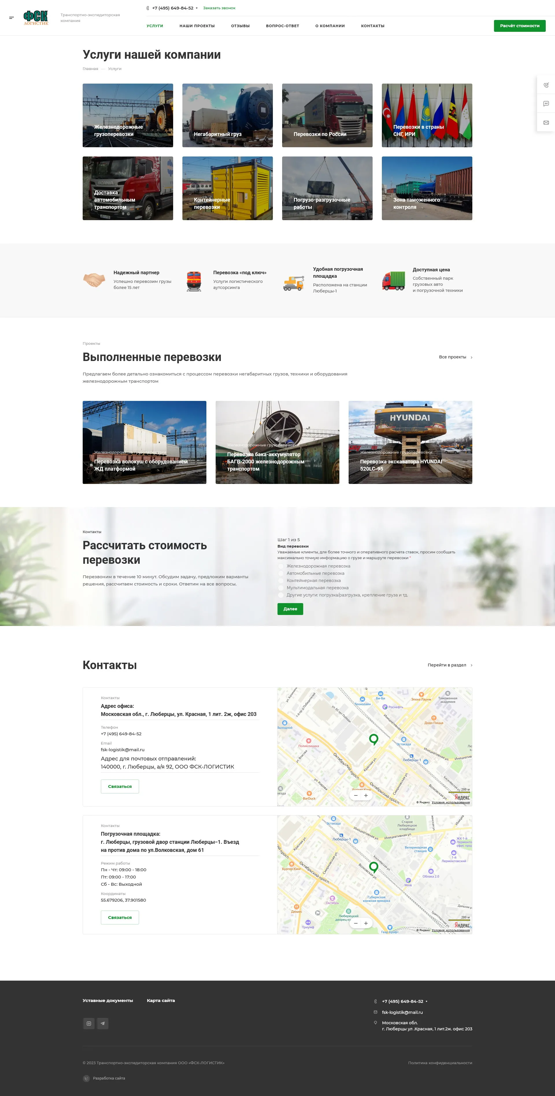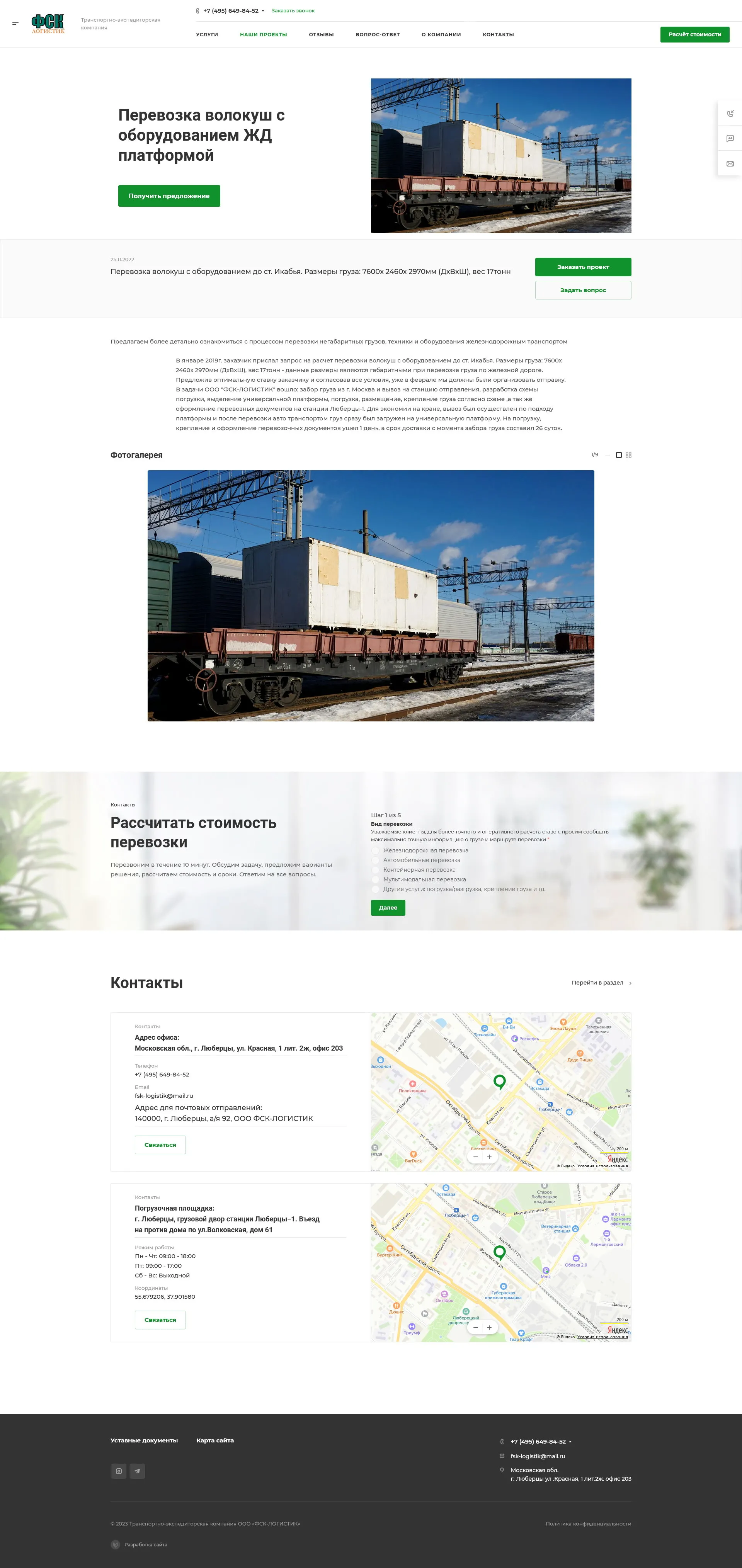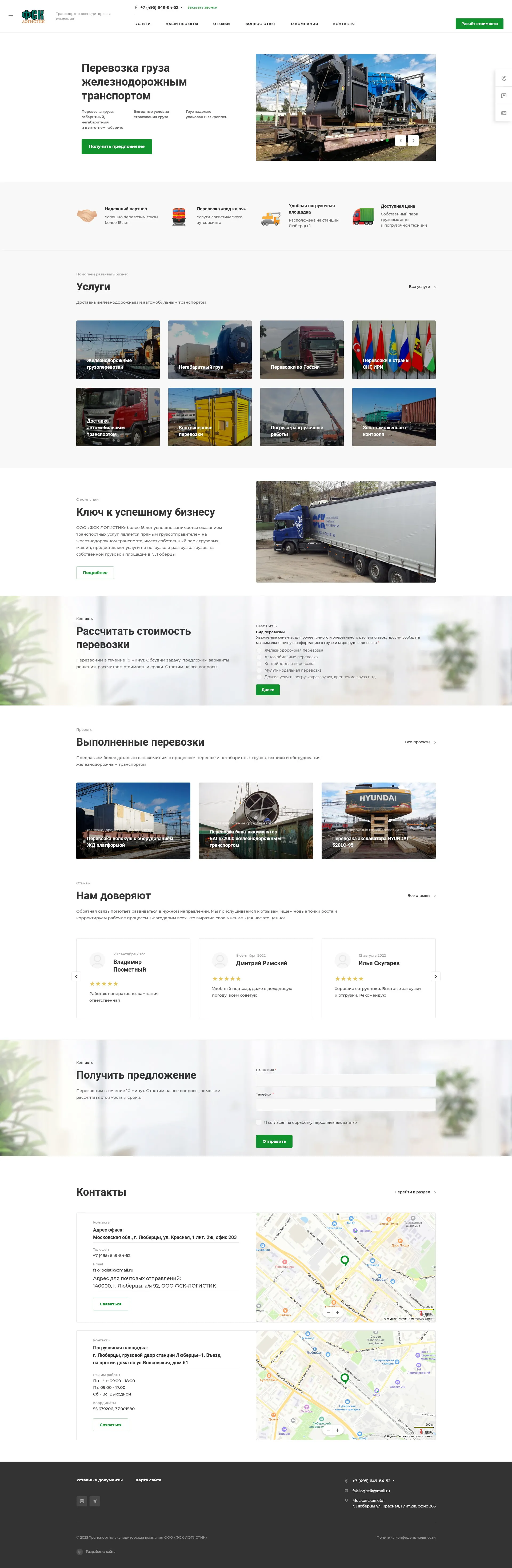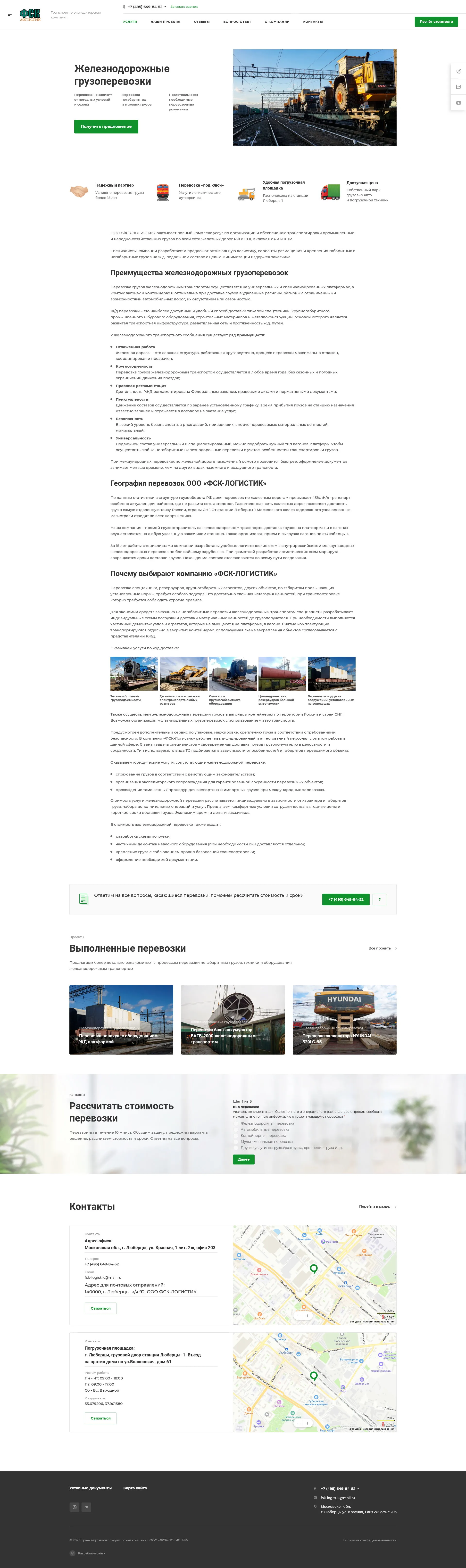 Fsk-logistik.ru — «Fsk-logistik.ru» специализируется на перевозках крупногабаритных, тяжелых и комплектных грузов по России и Ближнему зарубежью. Компания, организованная в 2005 году в г. Люберцы, за годы существования зарекомендовала себя надежным перевозчиком, это доказывает рейтинг сайта ati.su. Многие строительные организации и промышленные предприятия оценили безупречный сервис компании.