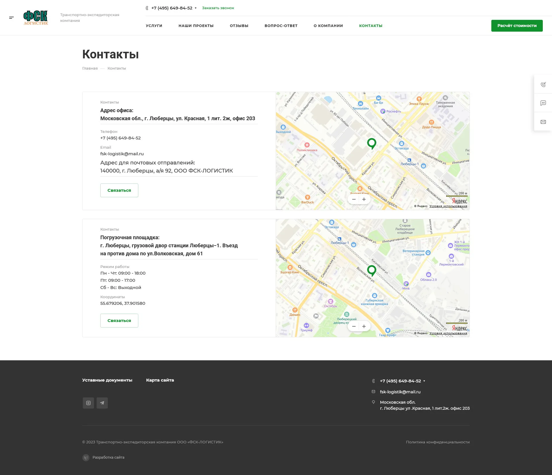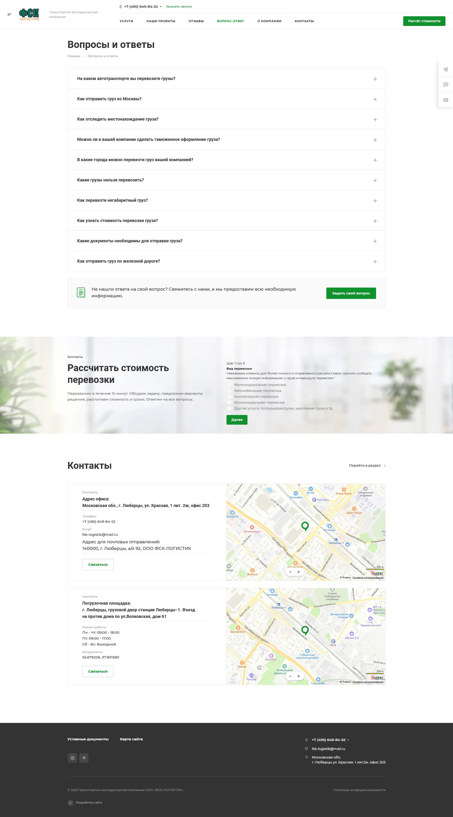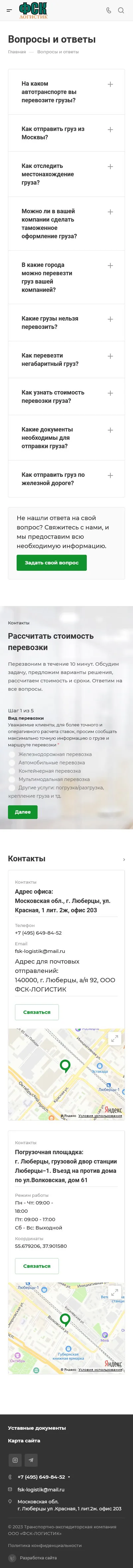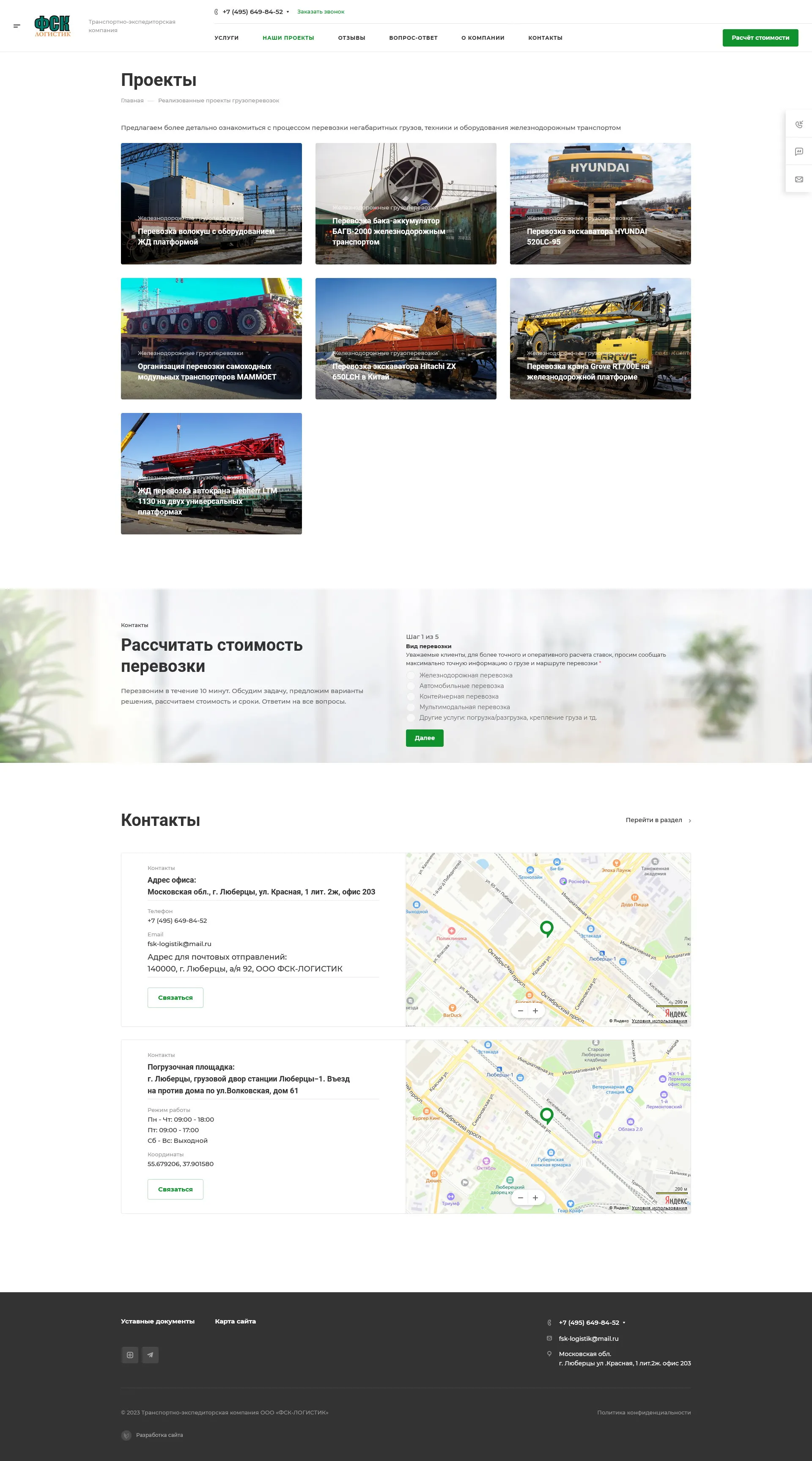 Fsk-logistik.ru — «Fsk-logistik.ru» специализируется на перевозках крупногабаритных, тяжелых и комплектных грузов по России и Ближнему зарубежью. Компания, организованная в 2005 году в г. Люберцы, за годы существования зарекомендовала себя надежным перевозчиком, это доказывает рейтинг сайта ati.su. Многие строительные организации и промышленные предприятия оценили безупречный сервис компании.
